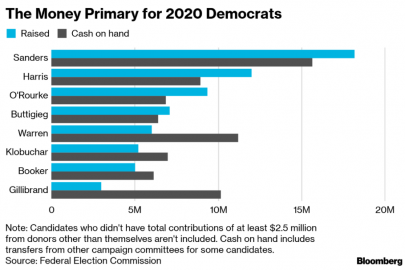 The Trump fundraising committees ended the first quarter with more than three times as much as any of the potential challengers in the Democratic field