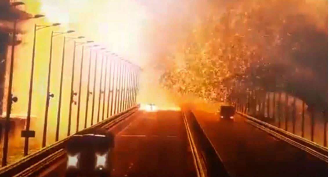 Crimea Bridge partially damaged after huge bomb explosion (watch moment of blast)