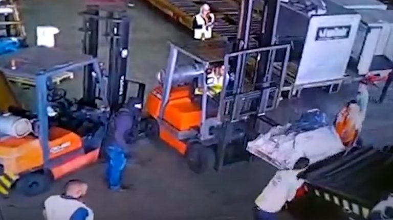 Otherwise known as a 'fire devil', the bright flame arcs towards the sky with explosions at the base