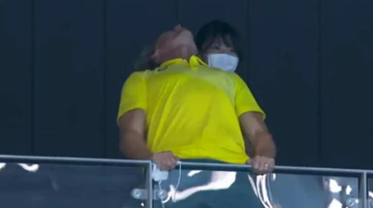 Aussie swimming coach goes viral after wild celebration at Tokyo 2020 (video)