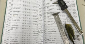 One scientist, Dave Willard, has measured dead birds and recorded the data by hand into a ledger...