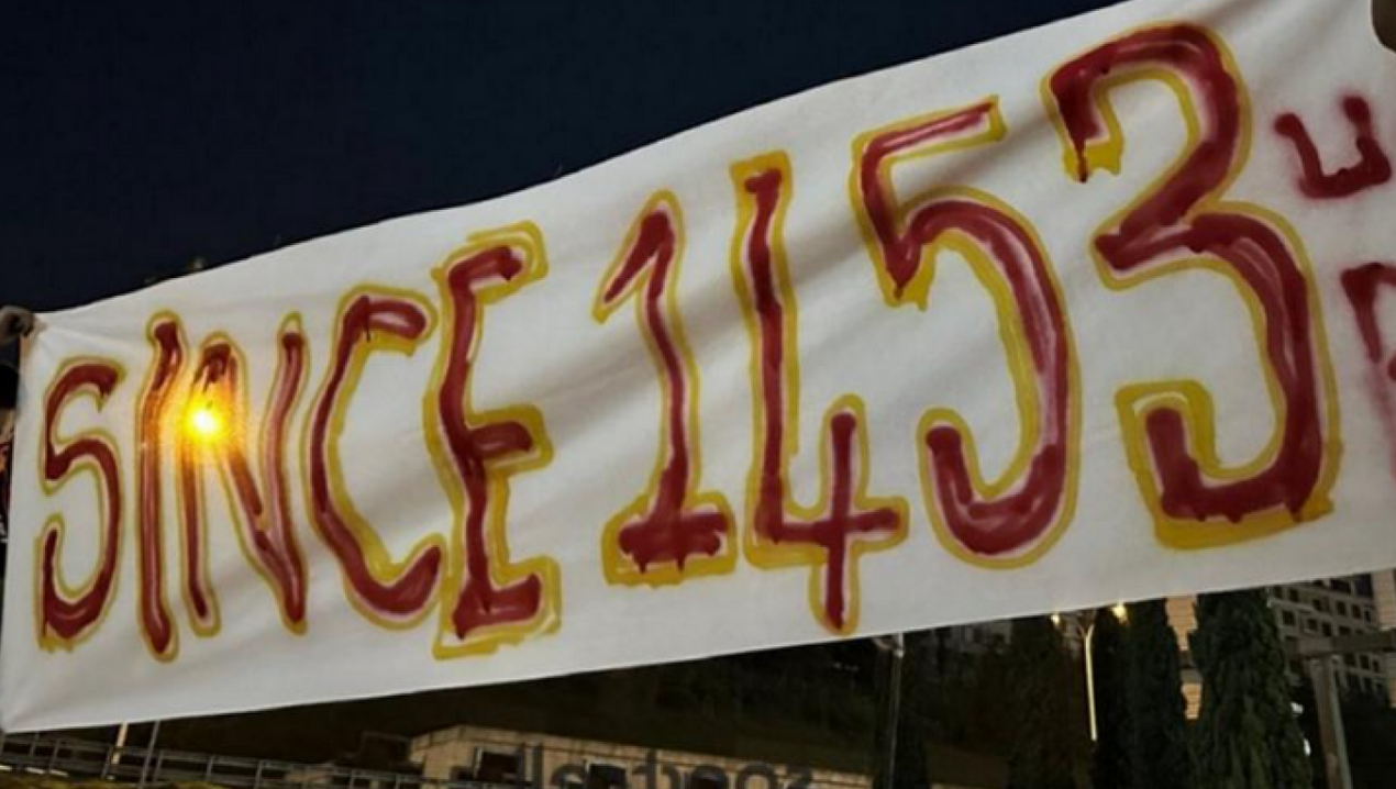 During the first inspection conducted by the Turkish police on the buses transporting PAOK fans, all Greek flags were confiscated - The Turks "welcomed" the Greeks with banners referencing the Fall of Constantinople