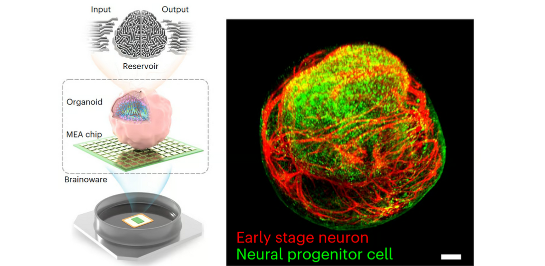 Cyborg computer with living brain organoid aces machine learning tests