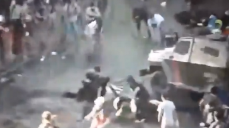 Shocking moment a protester is crushed by a police vehicle in Chile (warning: graphic footage)