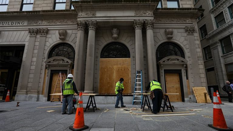 Many businesses are boarding up their windows
