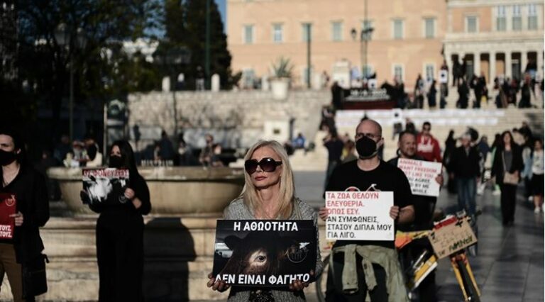Dozens of vegans in Athens protest the “barbaric” custom of skewering lamb for Easter (video-photos)