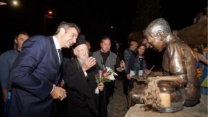 ND leader Mitsotakis meets with Ecumenical Patriarch Bartholomew on Imvros island