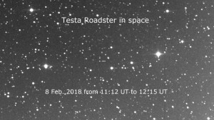 Starman and his Tesla Roadster are tracked by telescopes into deep space