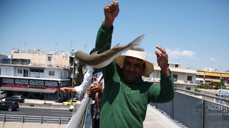 Incredible photos show fishermen reeling in mullets in Attica River (photos)