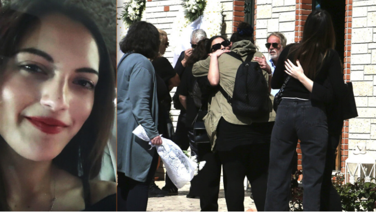 Mourning at the funeral of 28-year-old Kyriaki who was murdered outside the Agioi Anargyroi police station