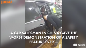 Car salesman gets head stuck in car door! (video)