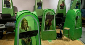 Image shows school band “Socially Distanced” inside Human Tents