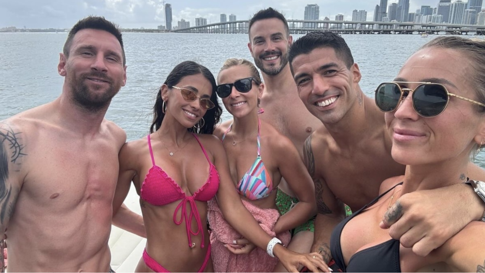 Lionel Messi vacationing with Suarez on a yacht, but all eyes were on the stunning Antonela
