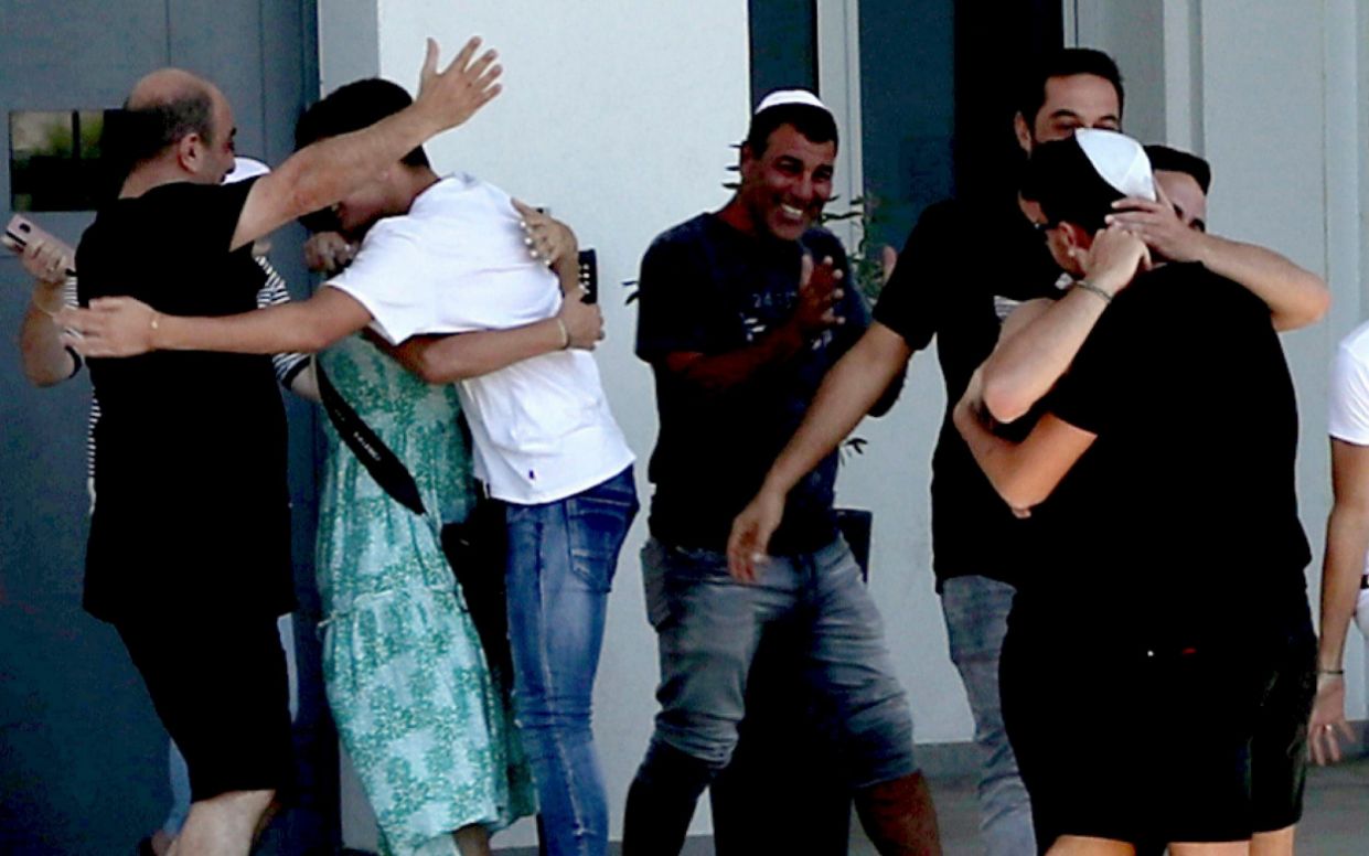 As the Israeli teens were released from police district headquarters jubilant relatives were there to greet them with hugs and kisses