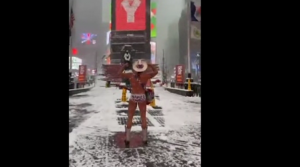 New York City’s famous ‘cowboy’ naked in the snow (video)