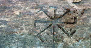 Lion of Piraeus etched with Nordic runes