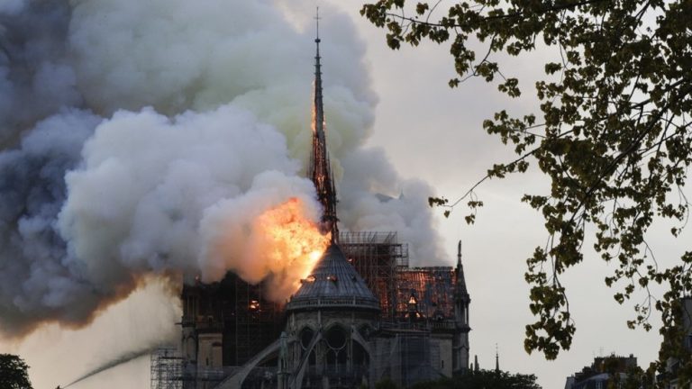 The April fire destroyed the landmark's spire and the roof that kept its twin-towered facade and ceilings stable