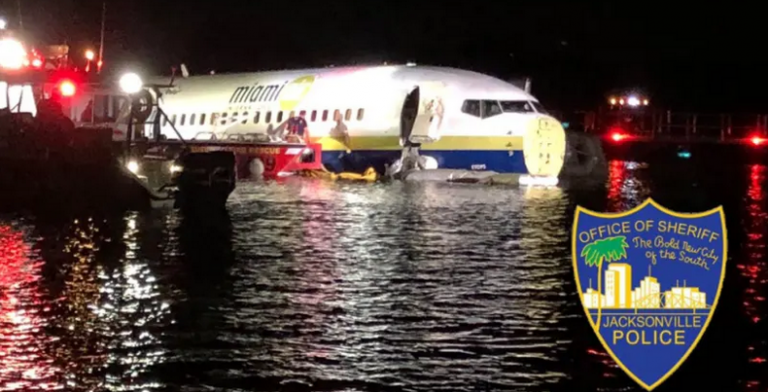 Boeing carrying 143 people slid off a runway and into a river in Florida (photos)