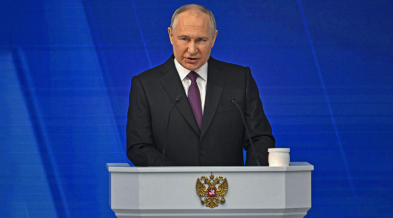 "Don't they know that we too have weapons that can defeat them on their own soil?" the Russian president asks in his speech two weeks before the elections in his country