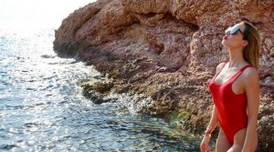 The hot babe took advantage of the weather and went to the beach