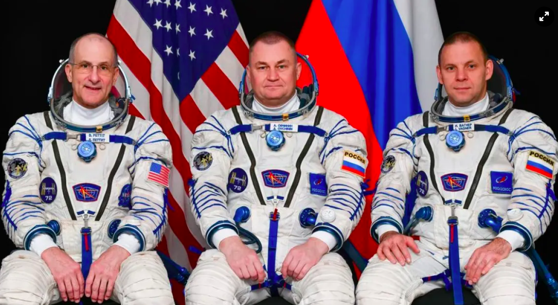 Soyuz Spacecraft Carries Two Russian Cosmonauts and One American Astronaut to the International Space Station