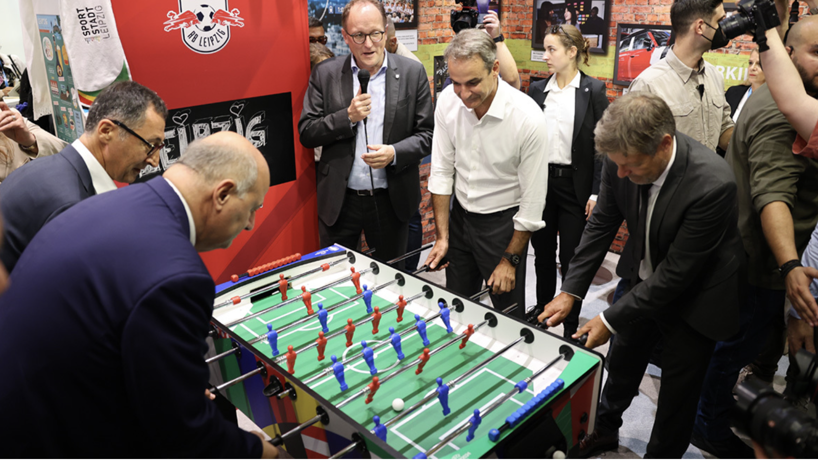 Mitsotakis at TIF played foosball, made predictions for PAOK and Olympiacos, received praise from the German Vice-Chancellor