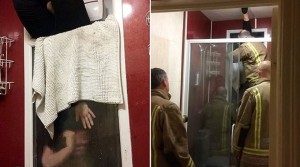 Woman stuck in window as she tries to retrieve own poop