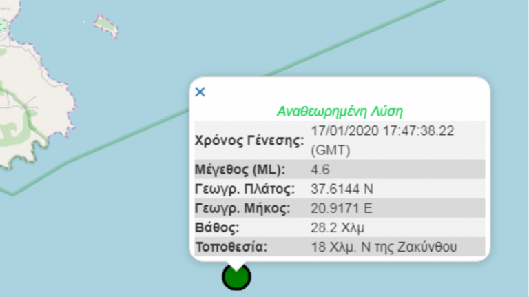 It struck 18 kilometres south of Zakynthos