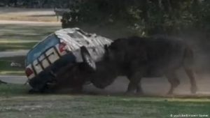 Rhino charges & flips car at German park in terrifying video with the zookeeper inside