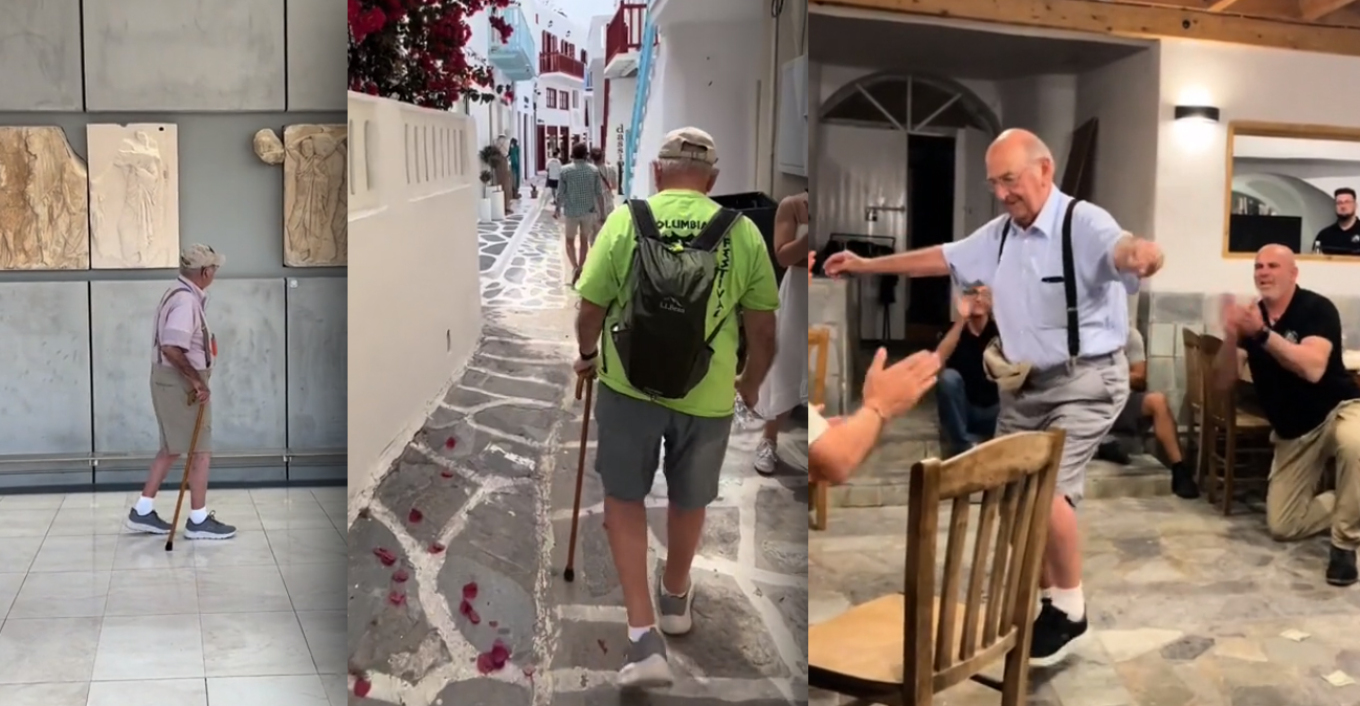 89 year old Greek man comes to Greece for the first time and goes viral on TikTok – Watch emotional video
